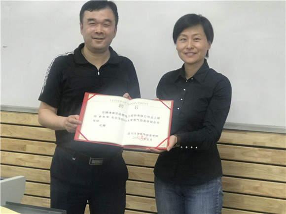 课后,学院党委书记韩芳为金耘岭先生颁发了“四川大学电气信息学院企业导师”聘书。