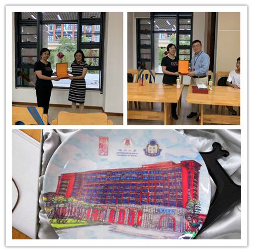 仪式的最后,赵莉华老师、于孜清老师代表四川大学永利集团3044am向澳门大学科技学院及蔡继有书院赠送了印有四川大学字样的纪念盘,甄院长也回赠了由书院同学自己创作的纪念盘。本次交流活动到此圆满结束。