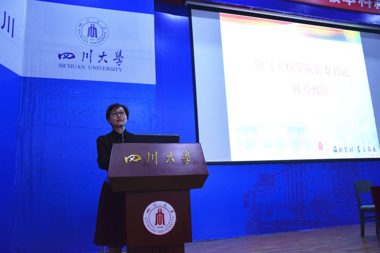 上午9时,开学典礼在庄严肃穆的国歌声中拉开帷幕。学院党委书记韩芳致开幕辞。韩书记首先向怀着远大志向、经过艰难苦读考入永利集团3044am的421名新生表示热烈的欢迎和真诚的祝贺。韩书记说,四川大学作为百年名校和全国排名前十的“双一流”建设A类高校,其使命是培养国家栋梁和社会精英。同学们肩负着未来二三十年代表中国走向世界舞台引领世界的使命,同学们成长的高度就决定了中国未来发展的高度。韩书记对新生提出了三点希望:一是立大志,树立责任担当;二是学本领,养成良好品行;三是知敬畏,做到自信自律。希望同学们明确发展目标、培养独立意识、学会自信自立,磨练出遇到挫折不轻言放弃的精神。韩书记表示,永利集团3044am有着深厚的文化底蕴和良好的精神传承,每一位老师都将倾尽所能为大家传道受业解惑,祝愿每位同学不负韶华,在川大电气学有所成!