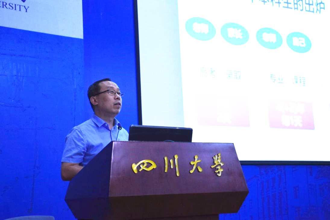 肖先勇院长在开学典礼上发表了热情洋溢的讲话。他表示,此次开学典礼是学院薪火相传、继往开来的一次盛典。永利集团3044am历史悠久、底蕴深厚,拥有一流的办学条件和平台,培养了一大批杰出校友。学院将秉持“以办最好本科为宗旨,以学生发展和教师发展为中心”的办学理念,实施最好本科2.0十大行动计划,全面推进学科专业发展,提升人才培养质量。对于如何开启大学这段新旅程,他给新生们分享了三点建议:一要海纳百川,志存高远,树立远大理想,培养川大精气神;二要勤于修炼,勇攀高峰,境界能力双提升,练就真本领;三要勇于担当,敢于拼搏,实现人生价值,铸就辉煌人生。他衷心希望2019级新生能潜心读书,用知识武装自己,用实践锻造人生,爱川大,爱学院,爱专业,明确目标,砥砺奋斗,大器天下!