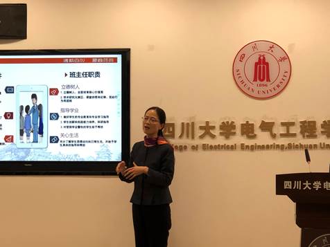 李华副处长作了《四川大学本科人才培养目标与落实》主题培训。她以如何培养面向未来社会的创新型人才为背景引入主题,强调教师职业的不可替代性、专业教师担任班主任的重要意义。她介绍了班主任的任职条件、岗位职责以及近年来学校班主任工作开展成效。并总体介绍了川大本科教育情况、人才培养目标、体系和举措,然后又从社会主义核心价值观、创新创业教育、学籍管理等方面对班主任如何帮助学生成长与发展进行了详细讲解。