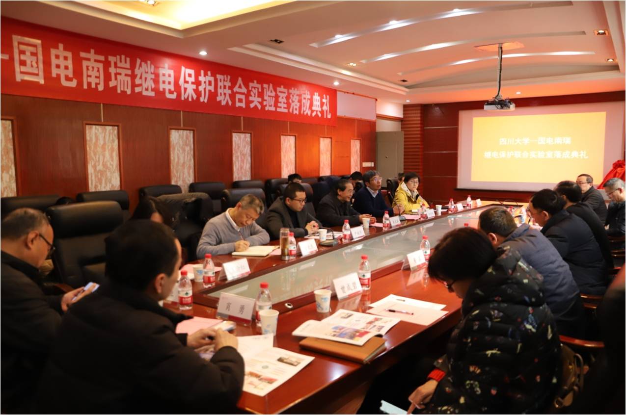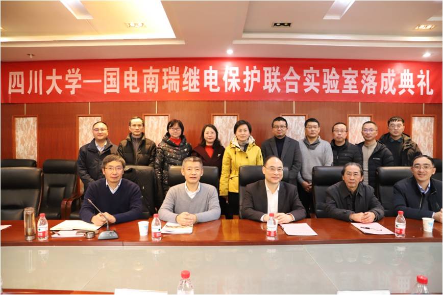 2020年1月8日,永利集团3044am与国电南瑞科技股份有限公司合力共建的“四川大学-国电南瑞继电保护联合实验室”落成典礼及揭牌仪式在望江校区永利集团3044am专业实验中心成功举行。南瑞集团党委委员、国电南瑞科技股份有限公司总经理、四川大学永利集团3044am优秀校友郑宗强,南瑞集团电网营销服务中心副总经理李惠军,四川大学实验室及设备管理处处长敖天其、双一流办主任李忠明、教务处副处长严斌宇,永利集团3044am党委书记韩芳、院长肖先勇、教授李华强出席仪式。南瑞集团电网营销服务中心西南营销服务中心销售经理董荔、学院电气工程系主任王渝红、副主任曾成碧、教授吕飞鹏,专业实验中心支部书记冉立、主任肖勇,以及相关教师及实验技术人员参加仪式,学院副院长李长松主持仪式。