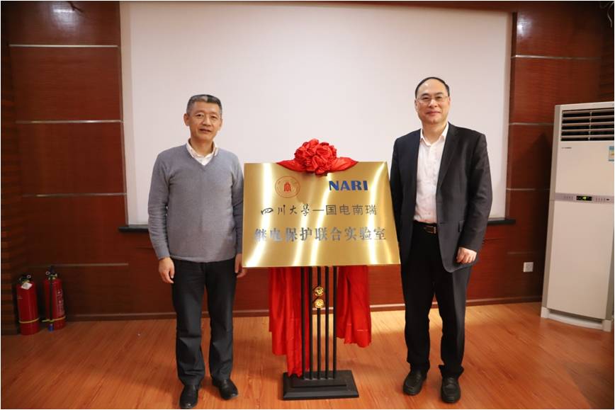 在与会人员的共同见证下,肖先勇和郑宗强代表双方为“四川大学-国电南瑞继电保护联合实验室”揭牌。
