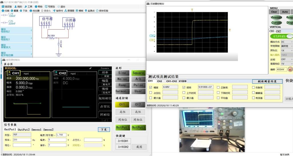 基础中心还为数电、模电、电工、电子系统设计与实践等课程开设了远程实物实验,学生们可以在自己的电脑上控制远端真实器件连接、在线操作测量仪器、获取硬件实验数据,同时还能通过远程摄像头进行观察,获得身临实验现场的体验效果。