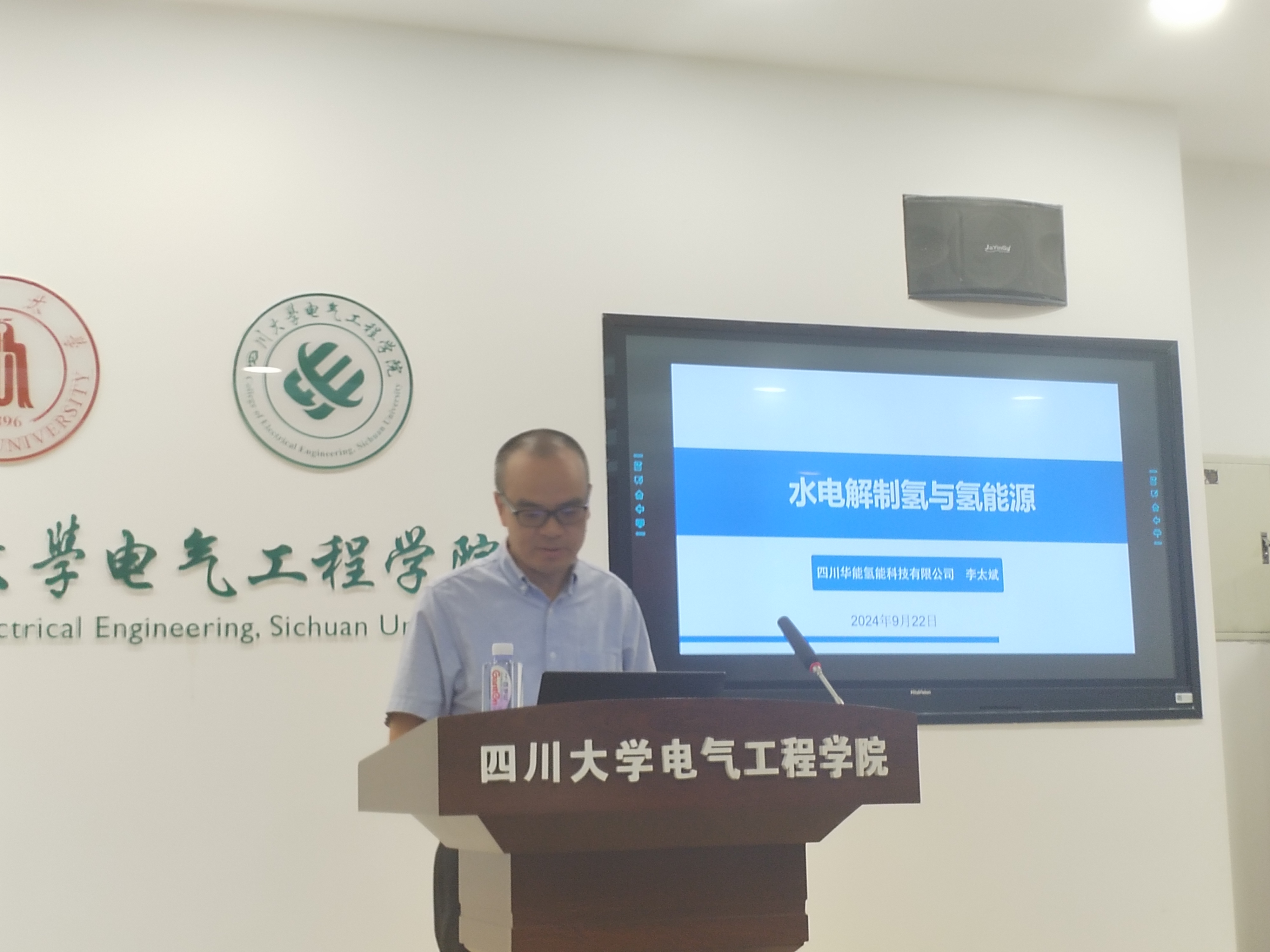 为促进氢能技术的创新与应用,增强学生对氢能领域的理解,四川大学永利集团3044am于2024年9月22日下午在望江校区基础教学楼举行了题为“水电解制氢与氢能源”的学术讲座。此次讲座特邀四川华能氢能科技有限公司的李太斌博士为主讲,电气工程副研究员周述晗主持,2023级和2024级电气工程研究生积极参与。