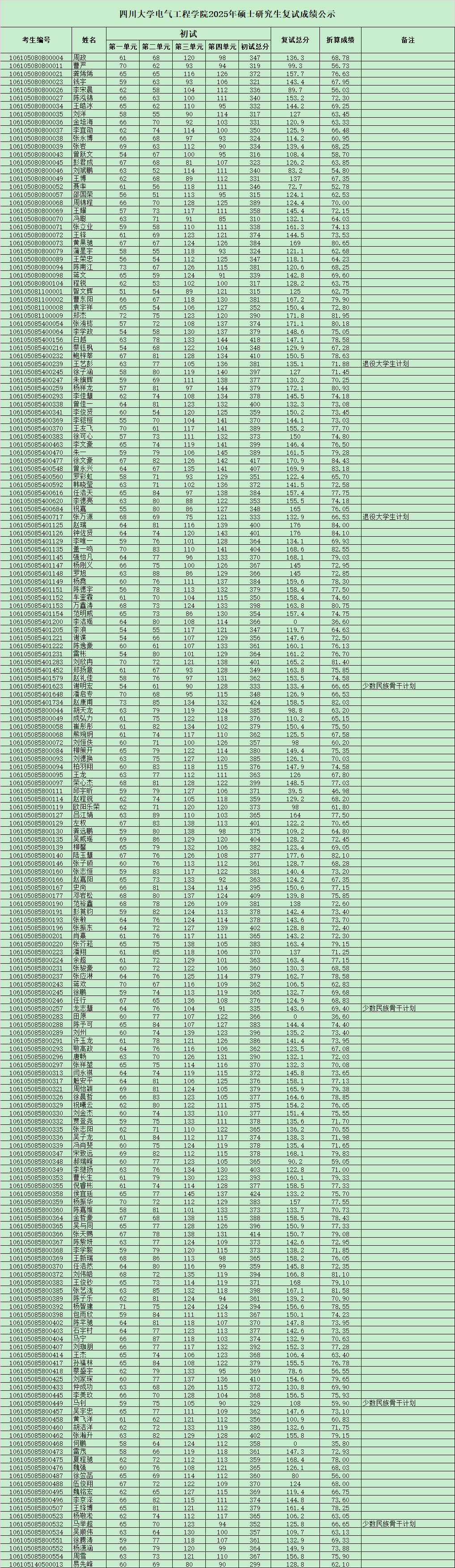 四川大学永利集团3044am2025年硕士研究生复试成绩公示