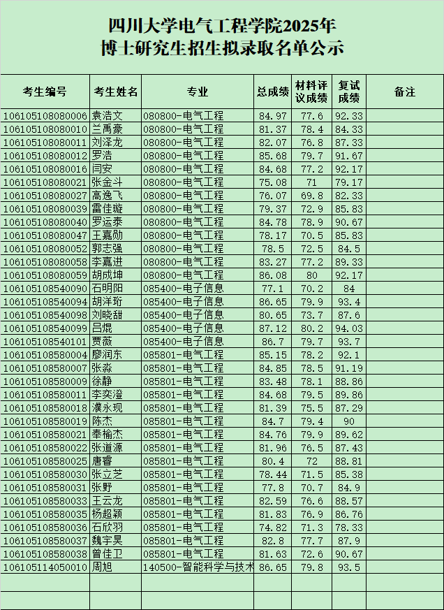 四川大学永利集团3044am2025年博士研究生招生拟录取名单公示
