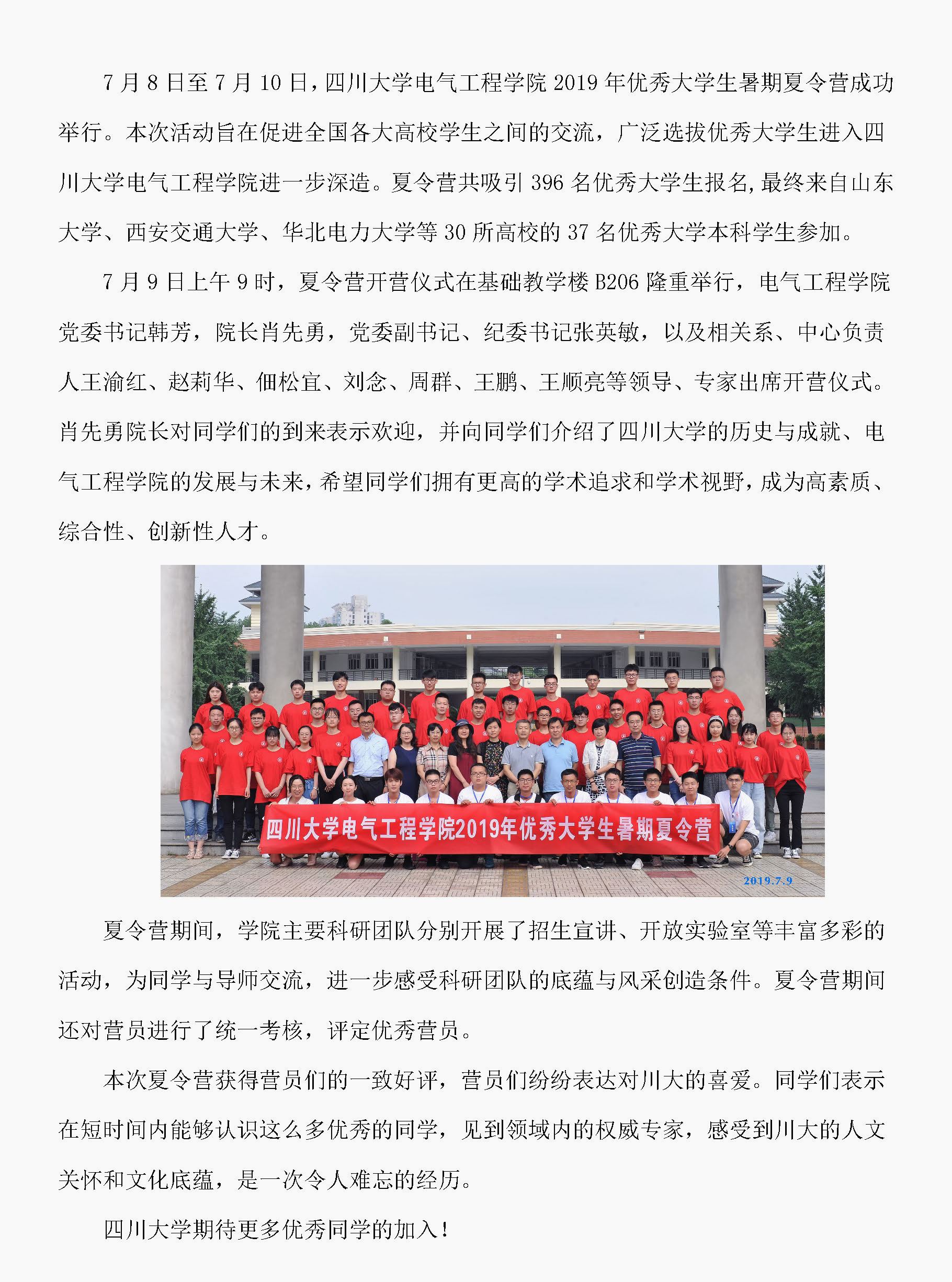 四川大学永利集团3044am成功举办2019年优秀大学生夏令营