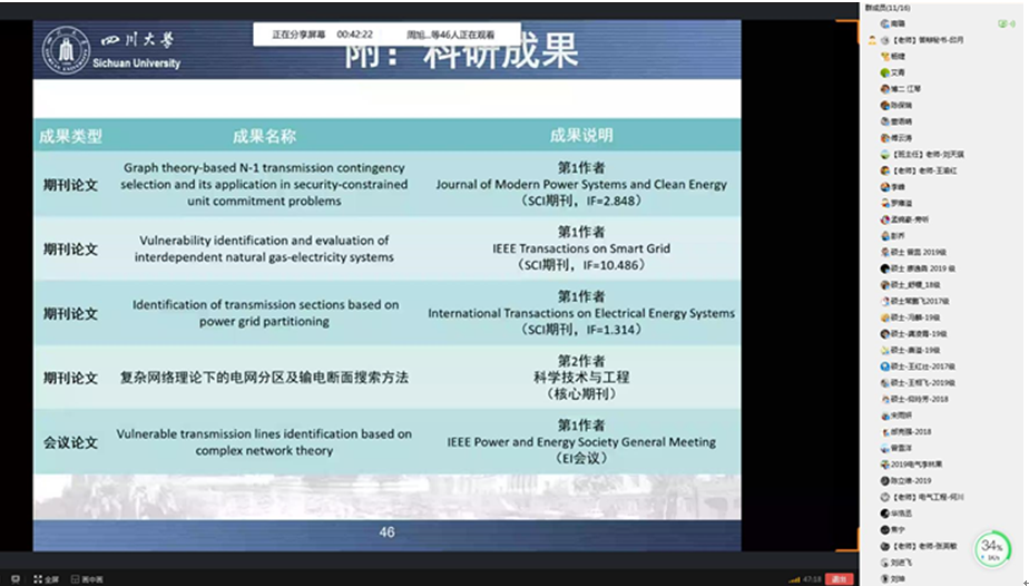 3月16日上午9点,电力系统稳定与高压直流输电研究团队刘天琪教授指导的3位博士生研究生预答辩也如期顺利举行,42位博硕士研究生参与旁听。