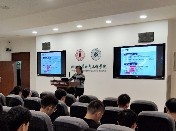 10月23日下午,2022级电气工程专硕班在基础教学楼B206开展了《技术前沿与专业实践》课程第三次课程讲座。本次报告由王杨老师主持,邀请到了国网四川省电力公司电力科学研究院正高级工程师徐琳博士,就配电网电能质量分析、治理及典型场景电能质量问题等进行了分析与探讨。