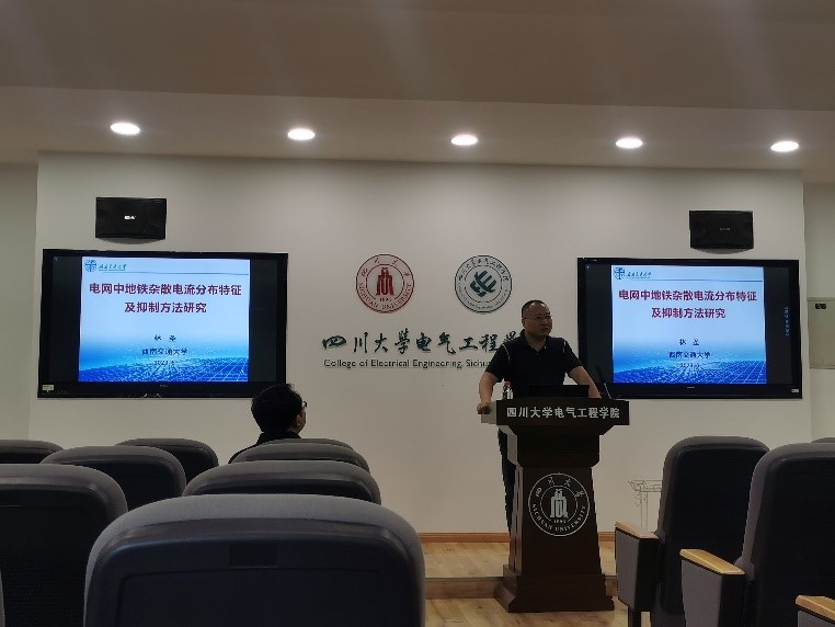 2023年5月14日,西南交通大学林圣教授应邀在四川大学基础教学楼B座206开展题为“电网中地铁杂散电流分布特征及抑制方法研究”的学术讲座。本次讲座由臧天磊老师主持。