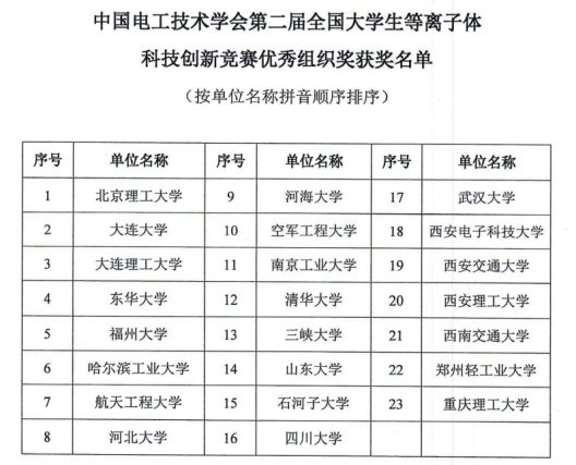 全国大学生等离子体科技创新竞赛是由中国电工技术学会主办、中国电工技术学会等离子体及应用专业委员会为主要召集单位的年度全国性科技竞赛,以“学科交叉融合,创新驱动发展”为办赛理念。等离子体作为物质的第四种形态,具有独特的物理和化学特性,其研究和应用涉及到电气、物理、化学、能源、环境、生物、医学、材料、空天等学科的交叉融合。该竞赛围绕国家和行业需求,聚焦等离子体及其应用的前沿和热点,引导大学生开展等离子体科技创新活动,培养学生具备学科交叉创新的素质和能力,加强高校和科研院所人才培养与国家需求的有效衔接,促进等离子体与环境保护、低碳能源、先进制造、环保农业、生命健康、空天海洋、先进材料等领域的深度融合与协同发展。