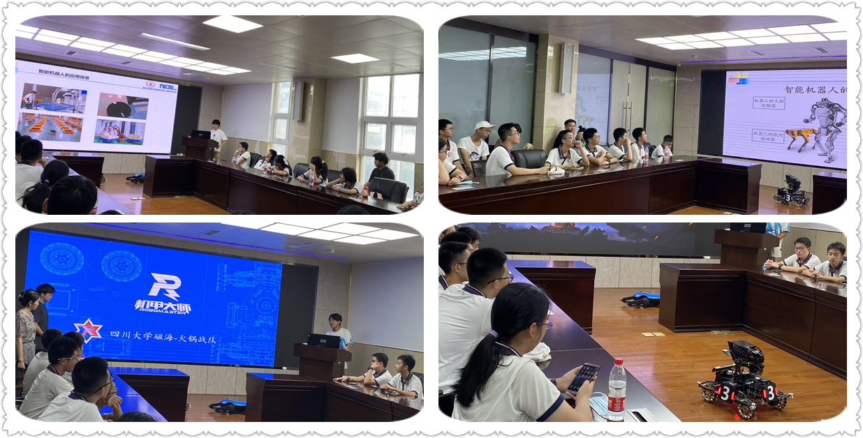活动开展了人工智能机器人以及控制工程机甲大赛知识讲座,介绍了智能机器人在核工业、电力系统等领域应用情况,以及“全国机甲大师赛”精彩视频,并现场进行了机甲机器人动作演示和智能机器狗Mini的现场表演。