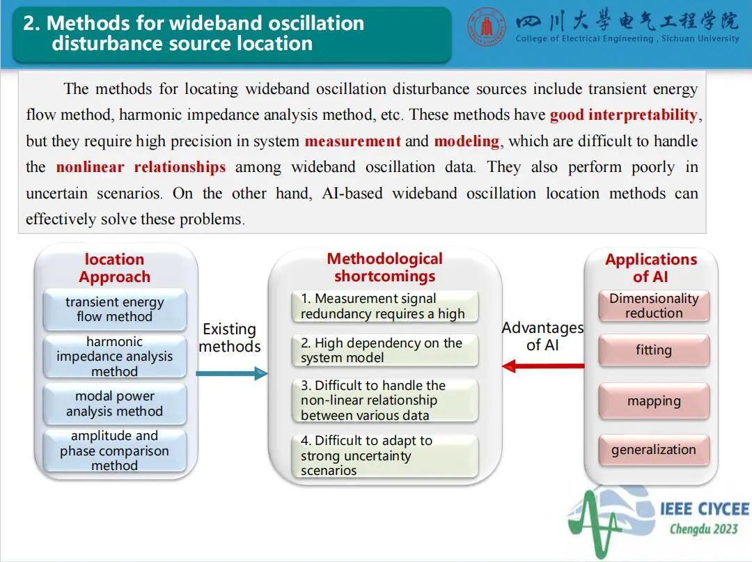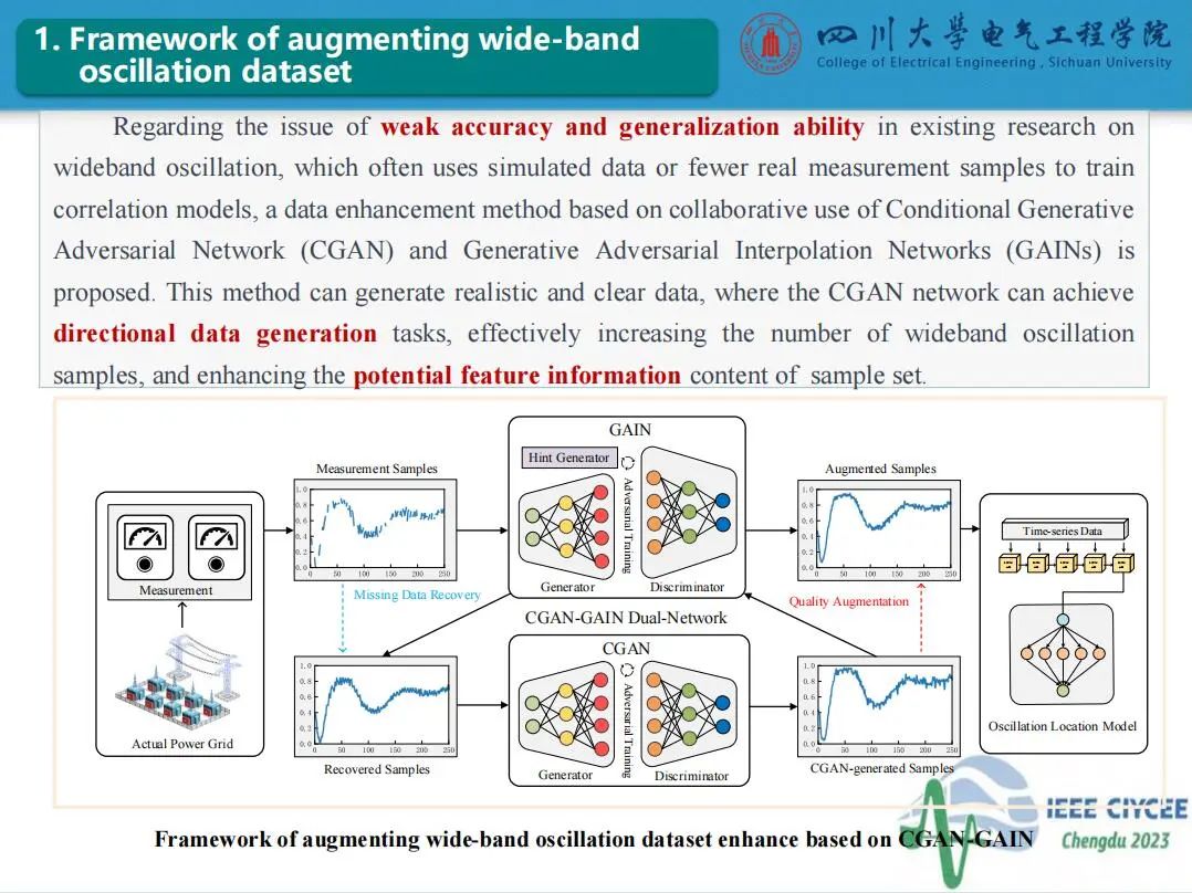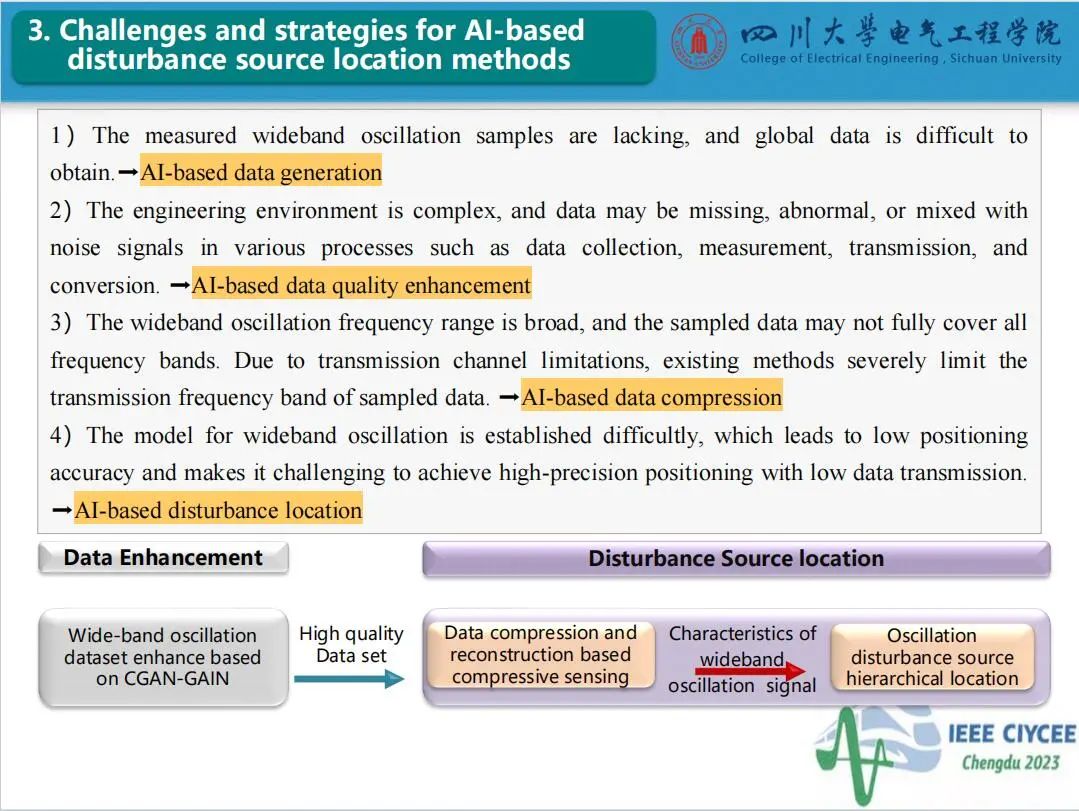 会上,四川大学永利集团3044am特聘副研究员郑宗生作了题为“电力系统宽频振荡扰动源定位智能增强技术”的主旨报告,介绍了目前电力系统宽频振荡扰动源定位面临的问题及人工智能技术应用于振荡源定位的挑战,分享了团队在基于条件生成对抗网络和生成对抗插补网络的数据智能增强方法和基于压缩感知与软阈值迭代算法的电力系统宽频振荡扰动源分级定位方法的研究工作。经本人授权,与大家分享报告PPT。