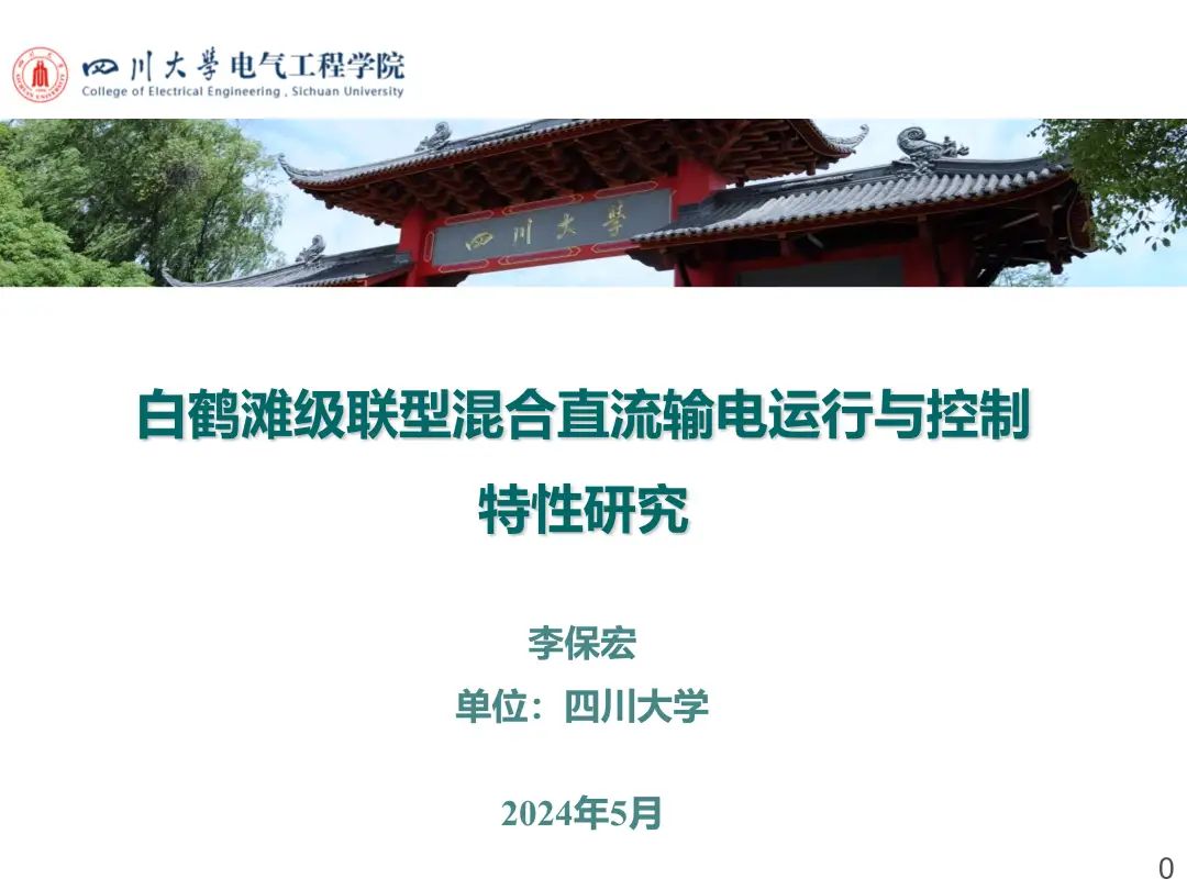 会上四川大学永利集团3044am李保宏副教授做了题为“白鹤滩级联型混合直流输电运行与控制特性研究”的报告,征得李保宏副教授同意,特与您分享!