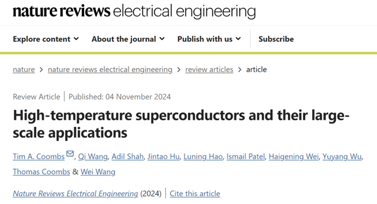 近日,学院国家级青年人才王为副研究员与英国剑桥大学在Nature子刊《自然综述:电气工程 Nat Rev Electr Eng》合作发表了高温超导领域的特邀综述论文《High-temperature superconductors and their large-scale applications》。四川大学作为唯一合作单位,负责了论文中有关磁通泵相关内容的撰写。