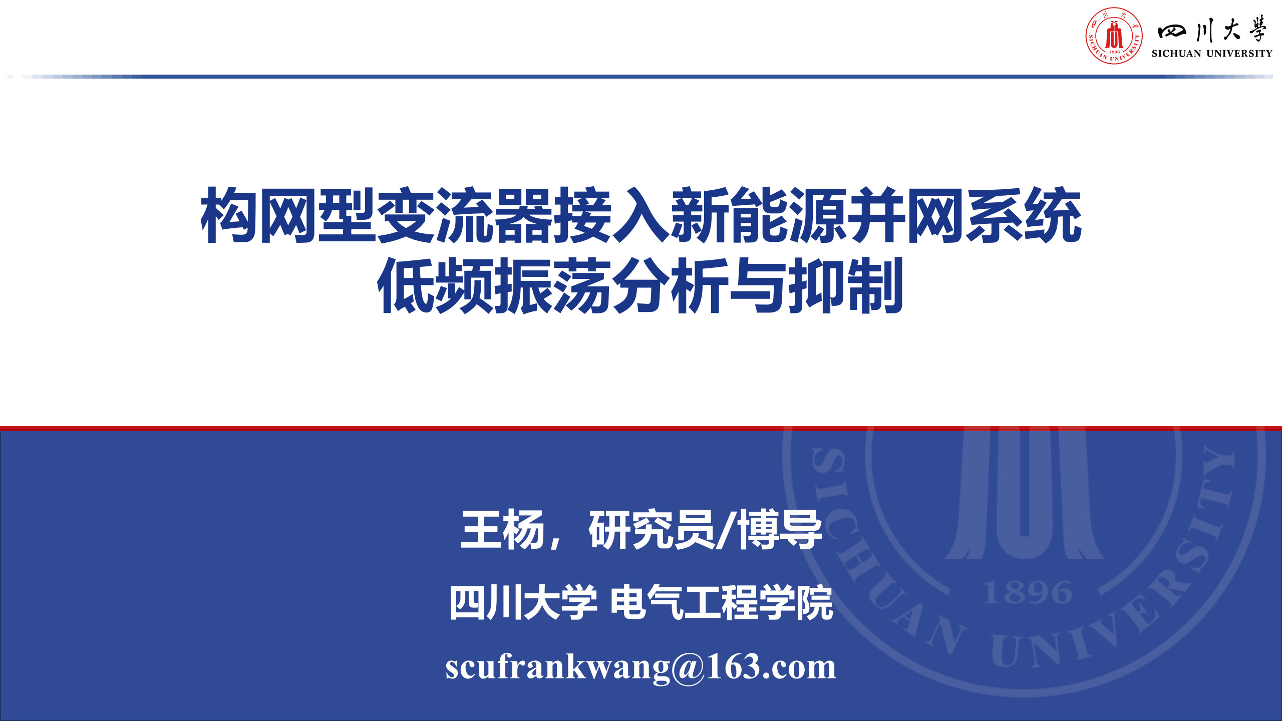 中国电机工程学会直流输电与电力电子专委会2025学术年会于2025年10月22-24日在北京召开。会上,四川大学永利集团3044am王杨研究员作了题为“构网型变流器接入新能源并网系统低频振荡分析与抑制”的报告。报告内容经本人授权,与大家分享。