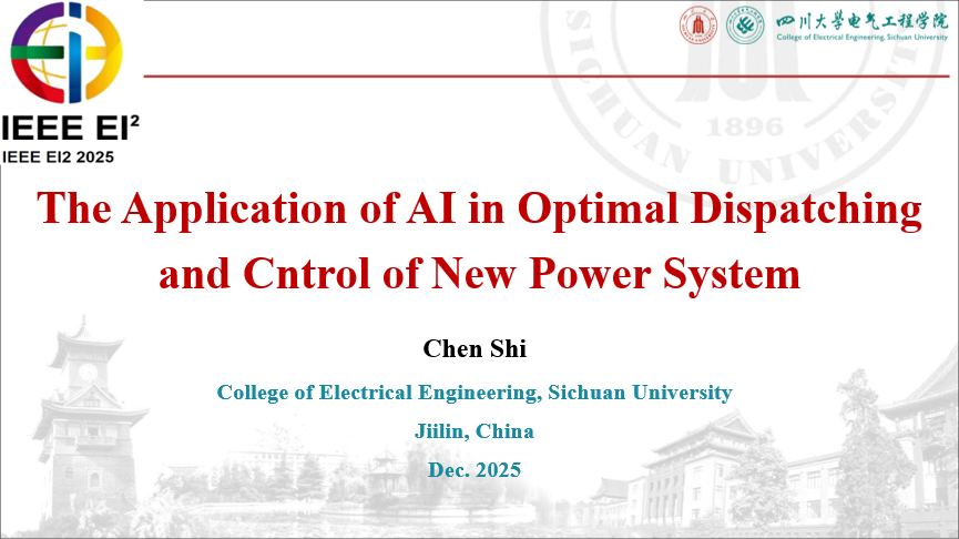 12月5日至8日,第九届IEEE能源互联网与能源系统集成国际会议在吉林市举办。会上,四川大学陈实副教授作题为"The Application of AI in optimal dispatching and control of new power system"的报告。报告内容经本人授权,与大家分享。