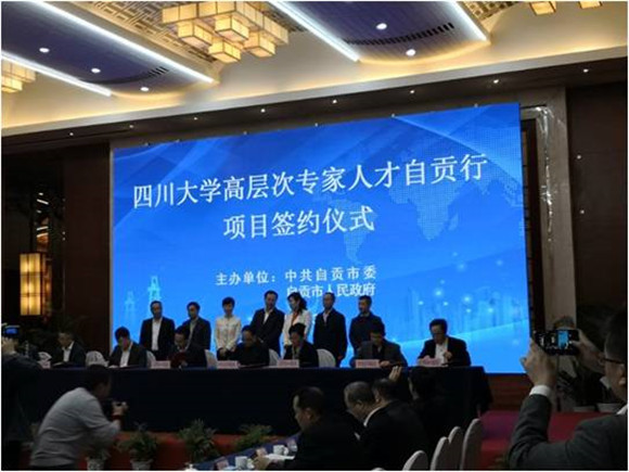 3月13日,四川大学高层次专家人才自贡行的项目签约与基地授牌仪式在自贡市檀木林金陵酒店成功举行。自贡市委书记李刚,市委常委、组织部部长刘敏,副市长曾明全,以及四川大学科研院副院长武梅,电气信息学院院长肖先勇,材料科学与工程学院院长刘颖,华西医院副院长龚启勇见证了四川大学高层次专家人才自贡行的项目签约与基地授牌仪式。四川大学电气信息学院的黄顺良、佃松宜、刘奇、张劲、张晗、刘念、赵涛,以及华西医院、材料科学与工程学院、制造科学与工程学院、空天科学与工程学院相关老师参加了签约与授牌仪式。