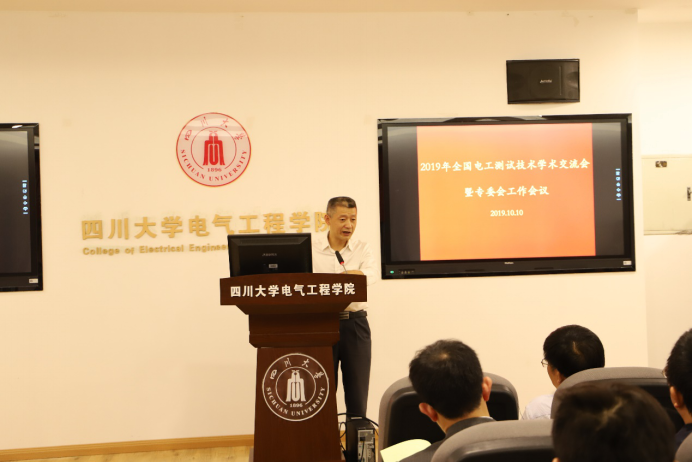 由中国电工技术学会电工测试专业委员主办的“2019年全国电工测试技术学术交流会暨电工测试专委会工作会议”于2019年10月10日在四川大学永利集团3044am顺利召开。出席会议的有四川大学永利集团3044am院长肖先勇,中国电工技术学会电工测试专委会主任、上海交通大学教授傅正财,专委会副主任、上海松宝科技发展有限公司总经理李刚以及来至清华大学、西安交通大学、华中科技大学、武汉大学、华北电力大学、重庆大学等高校,绵竹西南电工设备有限公司、中国电科院、西安高压电器研究院、各省市电科院、中国科学院电工所的专委会委员、代表等50余人。