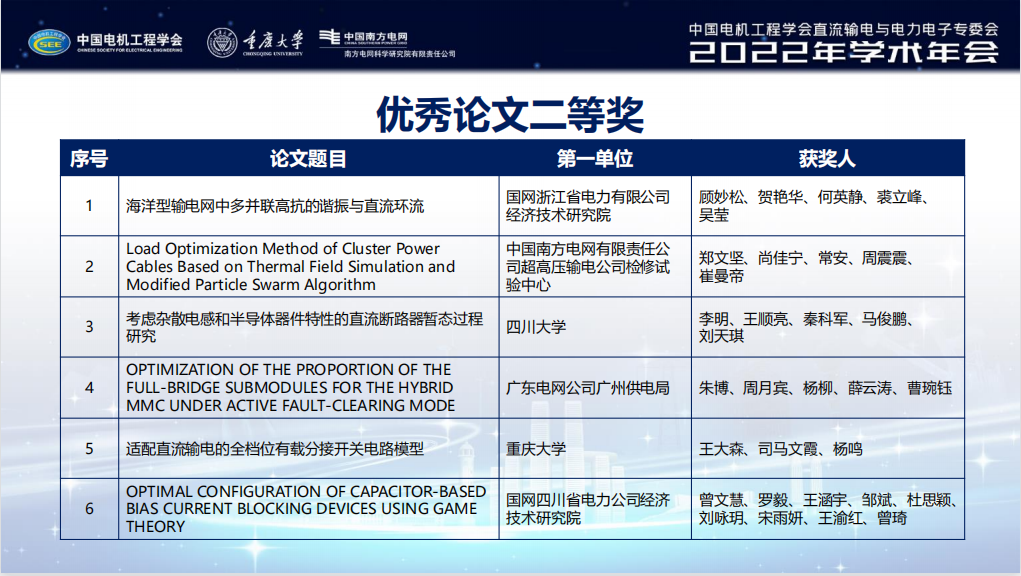 我院荣获中国电机工程学会直流输电与电力电子专业委员会2022年学术年会优秀论文二等奖和第八届“直流输电与电力电子创新杯大赛”二等奖