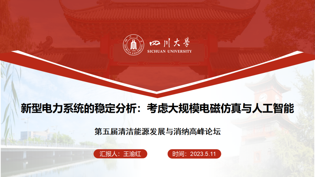 中国电机工程学会第一届电力系统专业委员会学组技术论坛暨2023年工作会议于5月11日在宁夏银川召开。会上,学院王渝红教授作了题为“新型电力系统的稳定分析:考虑大规模电磁仿真与人工智能”的报告,经本人授权,与大家分享。