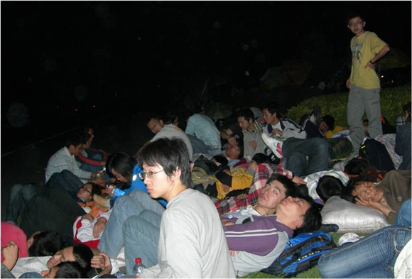 终于,在6个小时的等待后,一道刺眼的光,刺穿黑夜,直逼双眼。待眼睛适应了强光后,车身上四川大学的校徽跃入眼帘。喜悦顿时从心底喷薄而出,同学们欢呼雀跃、振臂高呼,回忆起来“那场景,跟足球比赛进球了似的”。
