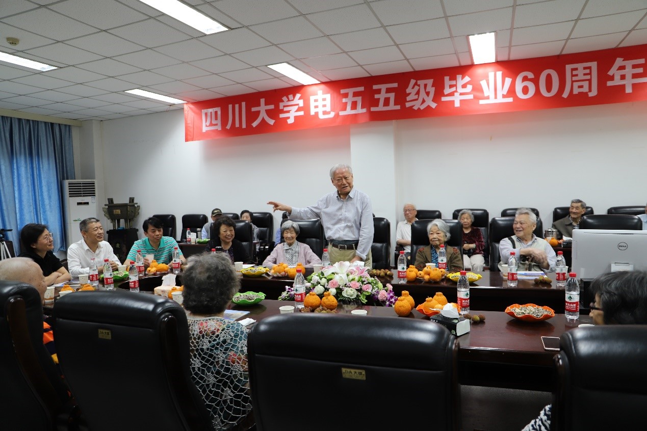 2019年5月23日,四川大学(原成都工学院)电55级毕业六十周年庆典于四川大学望江校区基础教学楼220会议室成功举行。参加此次庆典活动的有韩帮彦、张道泉、刘东珍、张述芳等学院老教师代表,还有尹可华、钟岷秀、王贵德等20多位电55级老校友代表。四川大学对外联络办公室主任荣建国,永利集团3044am党委书记韩芳、院长肖先勇、副书记张英敏、戴婷婷、副院长李长松等参加了此次庆典。