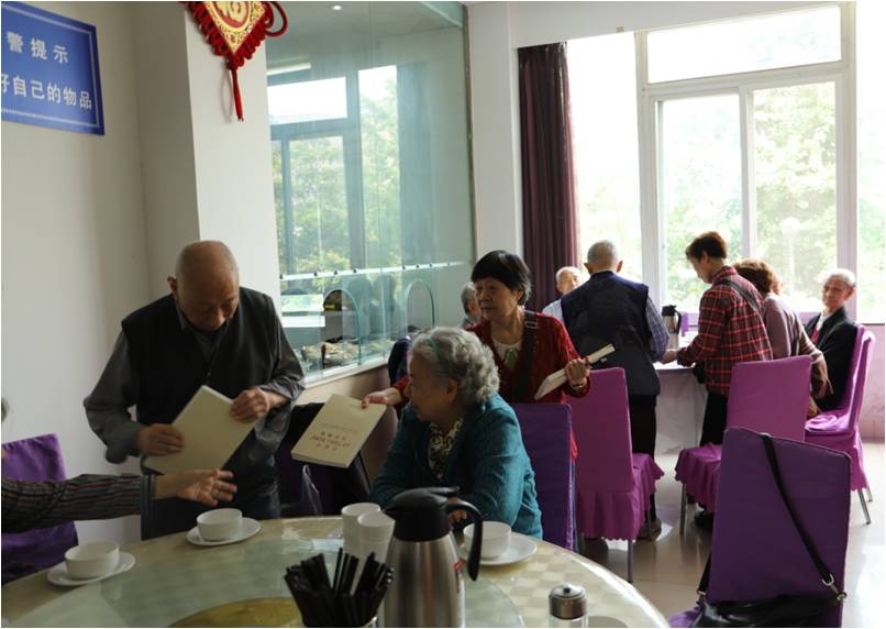 2019年9月26日上午,学院为退休党员准备了《习近平关于“不忘初心、牢记使命”论述摘编》和《贯彻落实习近平新时代中国特色社会主义思想、在改革发展稳定中攻坚克难案例》等主题教育系列书籍,学院党委书记韩芳、院长肖先勇、党委副书记兼纪委书记张英敏、院长助理李成鑫、工会主席黄顺良、党政办主任邓丽华来到活动现场,与退休支部书记胡淑群、张世三一起将书籍逐一发放到退休党员手中。