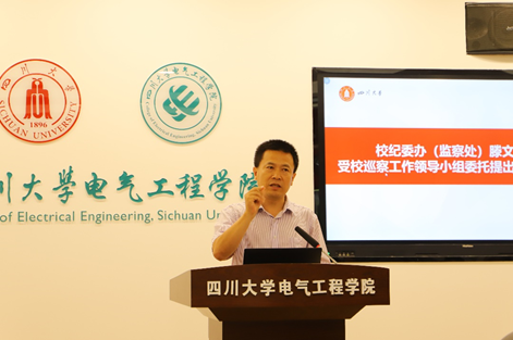 7月13日,学校党委第五轮巡察第一巡察组巡察永利集团3044am党委情况反馈会在望江校区基础教学大楼B206举行。第一巡察组组长惠新强,副组长赵露、刘杰向永利集团3044am党政主要负责人反馈巡察情况后,惠新强同志代表巡察组进行了大会反馈。学校纪委副书记兼纪委办主任、监察处处长、党委巡察办副主任滕文浩参加会议并提出巡察整改工作要求。学院党委书记韩芳作表态发言,院长肖先勇主持会议。