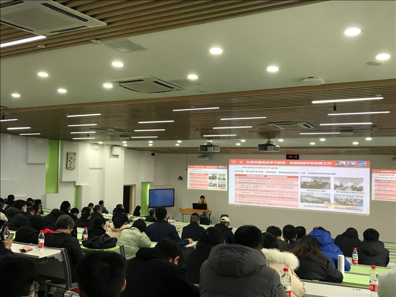 韩书记首先代表学院党委做党委工作报告及个人履职情况报告。韩书记从“抓思想、党政齐心,凝心聚力谋发展”、“抓典型、党员带头,先进引领做表率”、“抓宣传、正向牵引,营造氛围强动力”、“抓保障、温暖建家,党政工团齐奋进”等四个方面总结了2017-2021年度学院党委工作,并以“扎实开展党史学习教育,全面加强学院党委工作”为主题全面介绍了2021年党委工作情况。最后,韩书记对全院师生对学院工作的支持和付出表示感谢,并鼓励大家再接再厉,力争党建事业融合发展取得更好成绩。