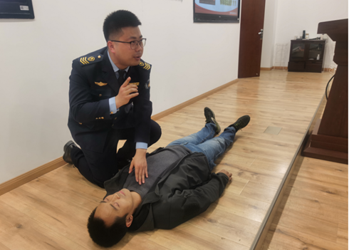 王教官首先从近年来高校实验室发生的安全事故和成都高楼火灾事故案例开始,为大家详细地讲解了宿舍与实验室安全用电、火灾避险逃生、消防器材安全使用等消防科普知识。随后,永利集团3044am负责实验室安全的罗江陶老师与王教官一起为大家演示了身边人员突发危险时的紧急抢救方法和措施。在王教官的热情宣讲下,党员老师们不由自主地跟随教官一起“动”了起来,模拟施救过程和抢救动作。