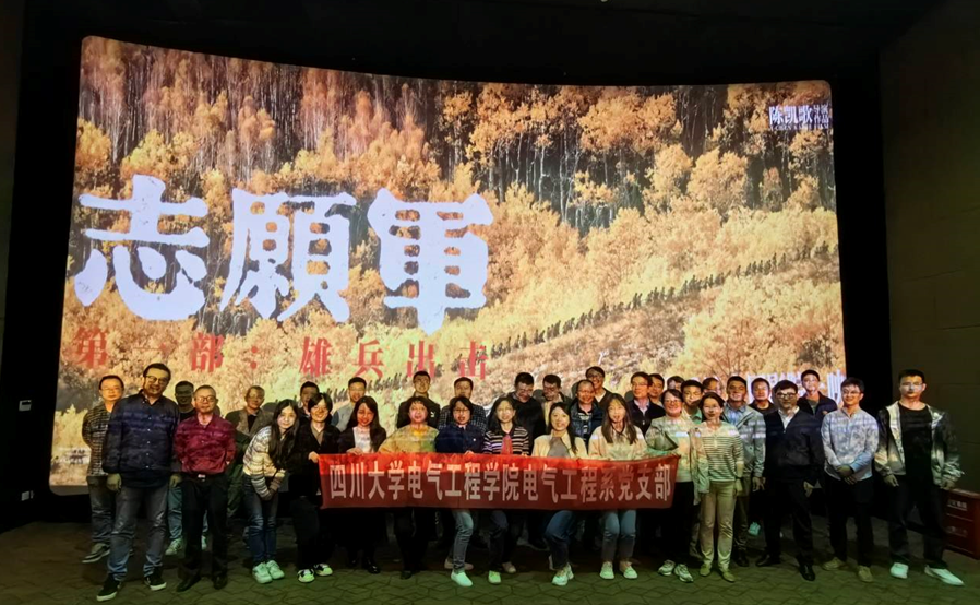 为庆祝中华人民共和国成立74周年,纪念中国人民志愿军抗美援朝出国作战胜利70周年,进一步弘扬爱国情怀、传承红色基因,10月13日下午,电气工程系党支部联合电气工程系工会小组共同开展了爱国主义教育主题党日活动,支部40余名党员集中观看了红色影片《志愿军:雄兵出击》。