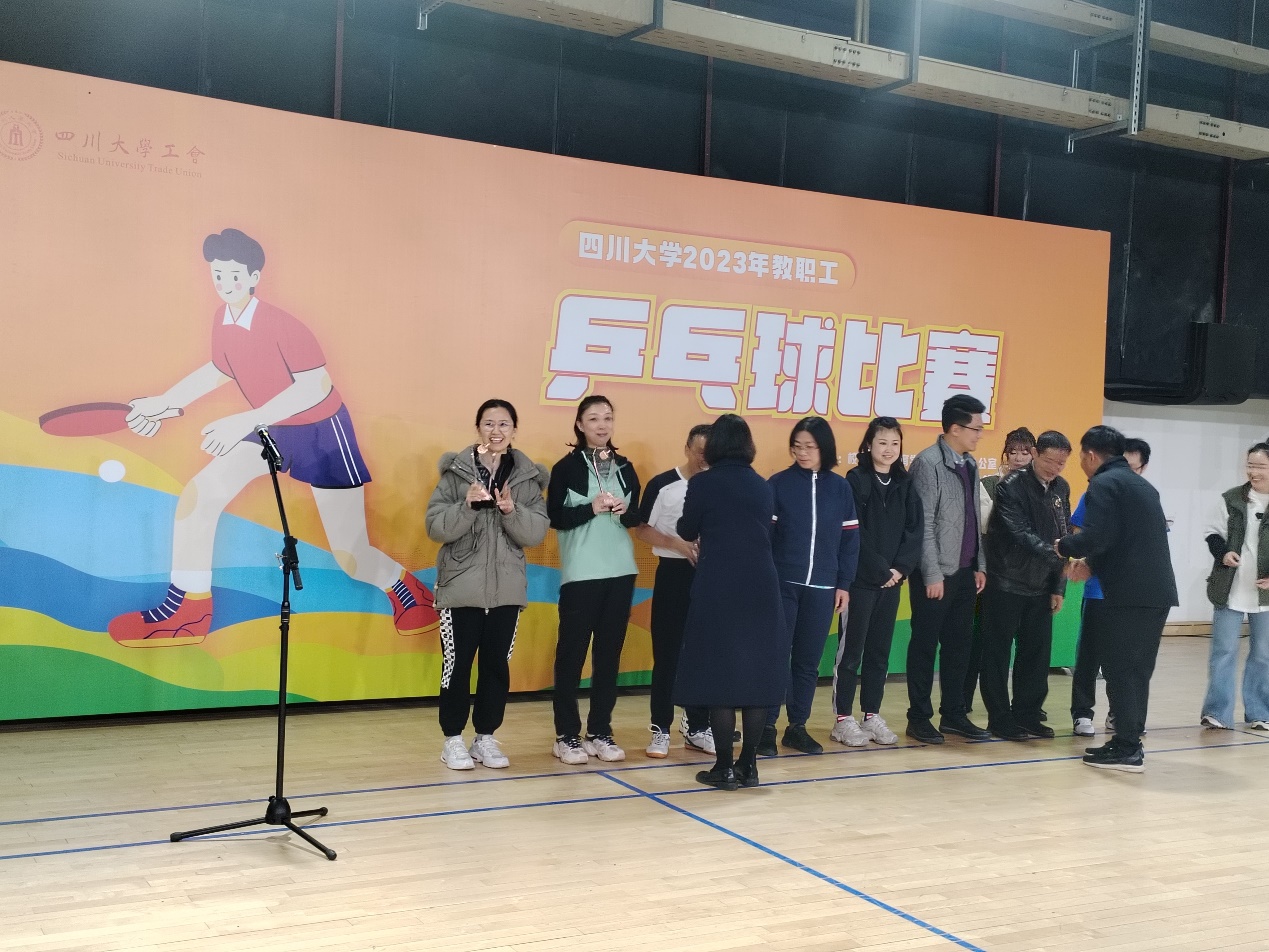 11月24日四川大学举办了“2023年教职工乒乓球比赛”。学院乒乓球协会会长王忠老师负责组织训练和选拔组队。学院工会副主席于孜清老师带队参加了比赛。