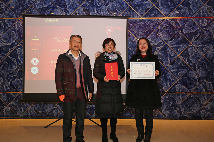 接着大会颁发了第二个奖项“终身贡献奖”,韩芳书记分别给杨洪耕、苏敏、任苏萍、吴晓梅四位老师颁发了奖状及奖品,老师们于2019年退休,他们“扎根电气大家庭,辛勤耕耘三十夏,甘将心血化时雨, 润得桃李满天下”的奉献得到了大家的肯定。