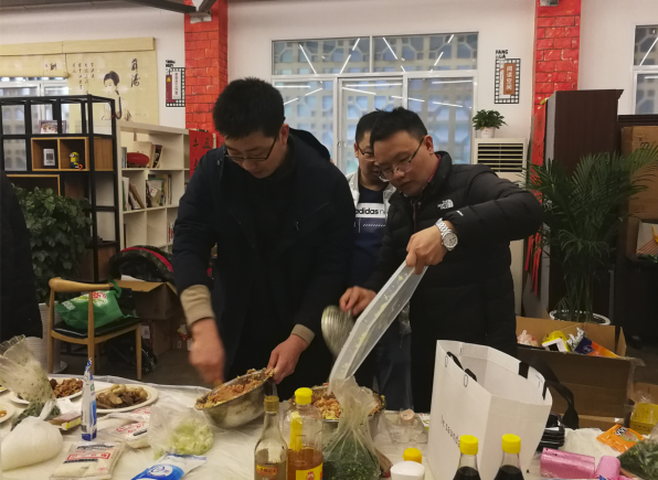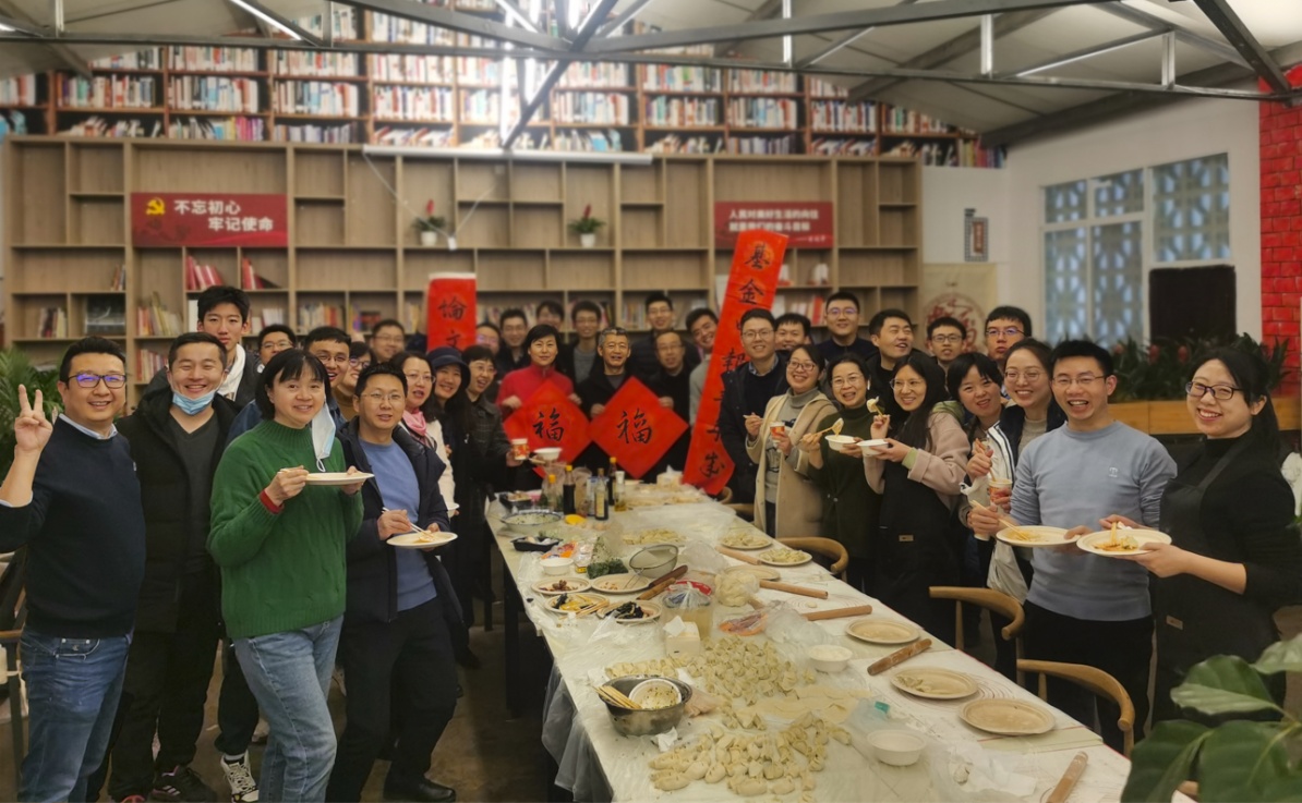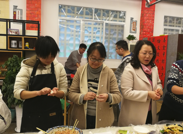 在一片忙碌中,到了包饺子的重要环节,老师们都卷起了袖子,拿起了擀面杖。无论是刚毕业鲜少下厨的老师,还是游刃有余经验丰富的老师,大家都热热闹闹地动起来。大家一边动手包饺子,一边讨论着包饺子的技巧,不一会儿几百个形状各异的饺子就出炉了。最后,老师们在一片欢声笑语中品尝自己的劳动成果,在轻松的生活氛围中系上老师们之间的情谊也得到了增进。