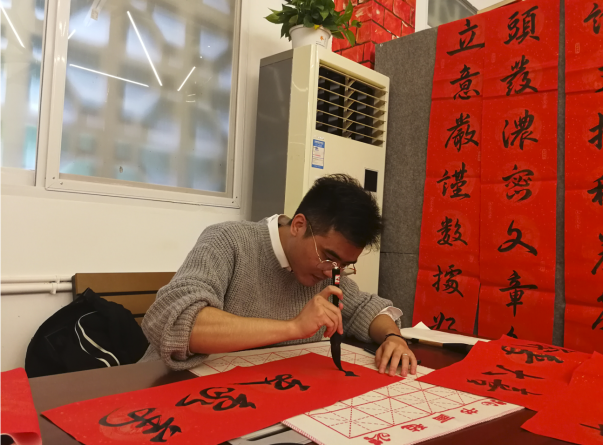 活动还未开始,就有不少老师提前来到活动场地帮着洗锅、切菜、备馅以及清理物资。“饺子”组井然有序的准备着,有的老师忙着准备各种调料,有的老师忙着整理锅具,有的老师忙着揉面,大家忙忙着不亦乐乎。另一边“春联”组胡文曦老师也备好了笔墨纸砚,为现场的老师们准备了各种寓意吉祥和幸运的对联,有的老师也亲自挥墨写“福”,为新的一年讨个好彩头。