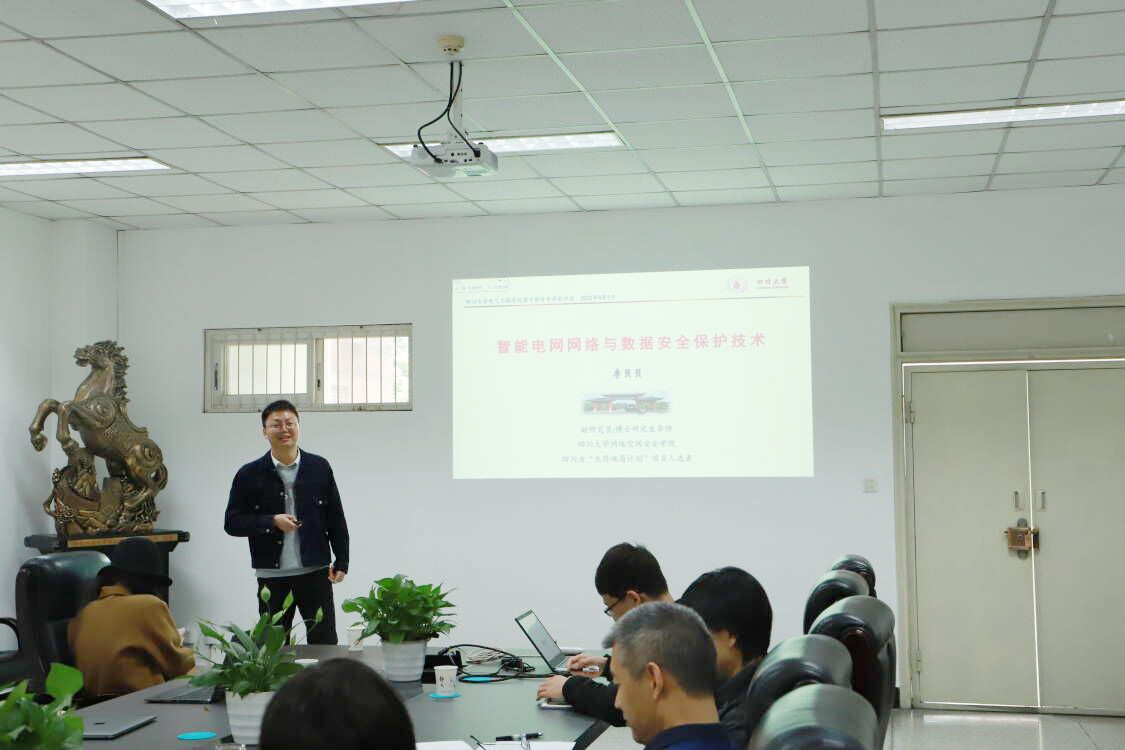 交流环节,来自三个学院的4位年轻教师从“人工智能”与“新型电力系统”两个学科研究重点领域,分别围绕《区域电网输电通道的人工智能调控方法研究》、《基于深度强化学习的电力系统PMU配置研究》、《智能电网网络与数据安全保护技术》和《面向知识支撑系统与交互系统的自然语言处理》四个专题进行了学术交流。