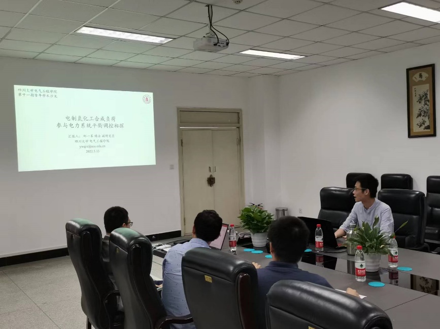 学院副院长周步祥发表讲话,他对前来参加青年学术沙龙的师生表示了热烈欢迎,鼓励大家多交流、多合作,促进学科交叉,希望通过此次与化工学院和轻工学院的交流,能进一步促进彼此间的科研合作。交流环节,来自三个学院的4位青年教师分别围绕“电制氢化工合成负荷参与电力系统平衡调控”“可再生能源与绿色化工的融合”“化工过程故障诊断与报警管理”和“化工过程系统多尺度建模与优化分析”四个主题进行了学术交流。