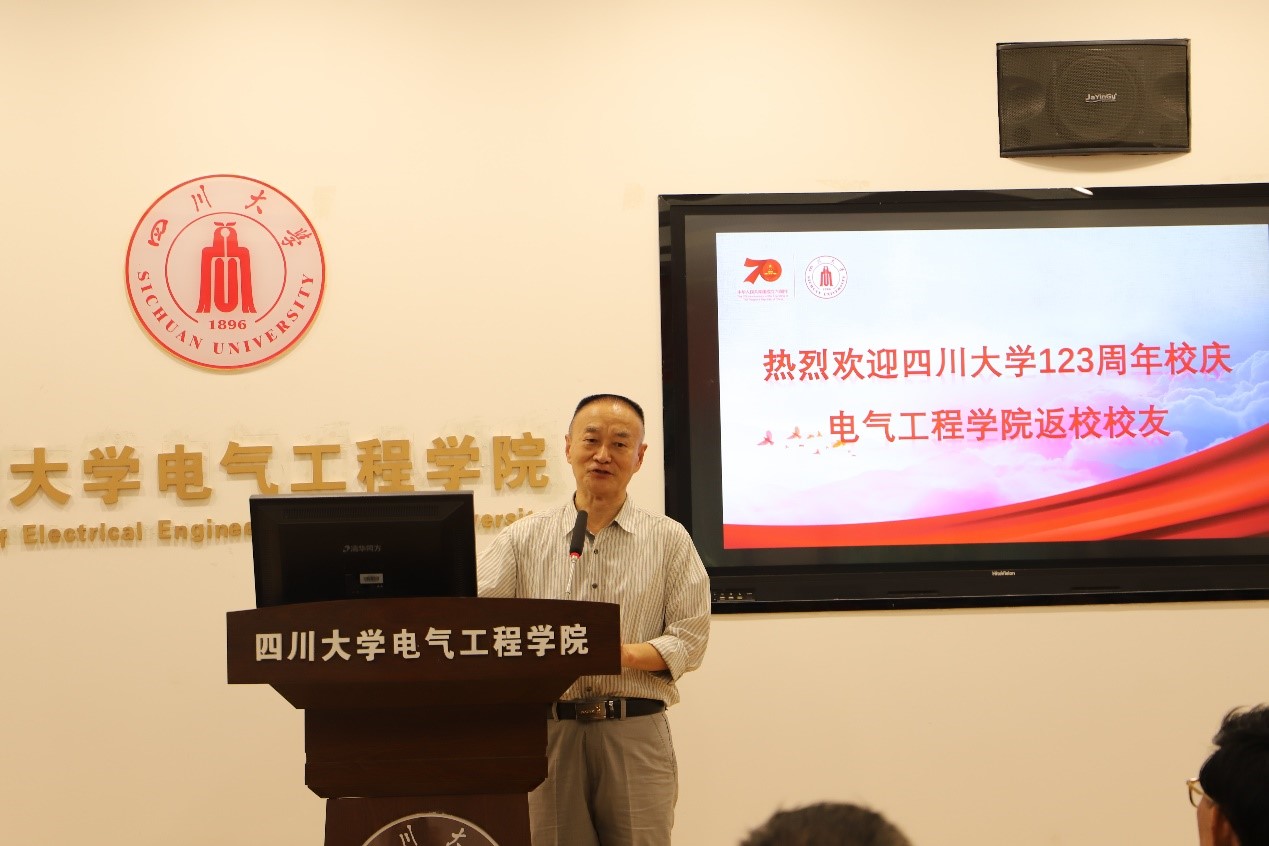随后,63级电机电器制造专业付肈宾、63级发输配专业张泽元、65级电机电器制造专业余顺东3位校友代表先后致辞。他们向为校庆精心筹备、周到安排、热心服务的学院领导、老师和同学们表示衷心的感谢,表达了作为川大学子感到无比自豪和光荣,感谢母校给他们带来智慧学识、拼搏的力量、做人的原则和奋斗的方向,为祖国、母校、母院的发展壮大他们喝彩点赞。为了感谢母校,他们倾情献给母校一首小诗: