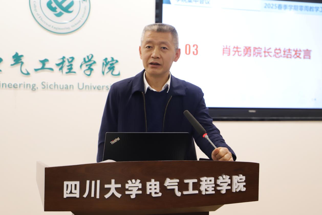 会上,院长肖先勇指出,人才培养是复杂非线性过程,坚守立德树人初心,探寻教育本源,开展以促进人的全面发展为中心的本真教育,这是作为一流大学的川大电气的历史使命和时代责任,需始终秉持“本真教育”人才培养理念,千方百计帮助学生成才,一个都不能少。学院自2018年起,坚持每学期零周会议,坚持每年行政一号文聚焦教育教学,在人才培养上见真章。经过全院师生共同努力,取得了明显成效,尤其去年推进“两严两化”行动计划以来,成效显著。但要清醒认识到,育人环境、育人对象、育人条件在不断变化,如人工智能赋能教育教学,就是当前值得重视的重要工作,我们需要不断结合新情况、新要求,持续开展有研究的教育教学,把为党育人,为国育才使命落到实处。他提出,本学期及本年度工作重点要扎实做好新一轮本科教育教学审核评估工作,落实教育强国建设规划纲要和全国教育大会精神,以课堂质量为窗口,通过持续提升课堂质量,推动人才培养质量不断提升。