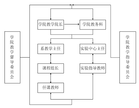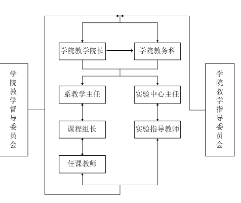 学院根据自身特点和实际情况制定了院、系三级质量监控机制,以加强教学管理,监控机制构架如下图: