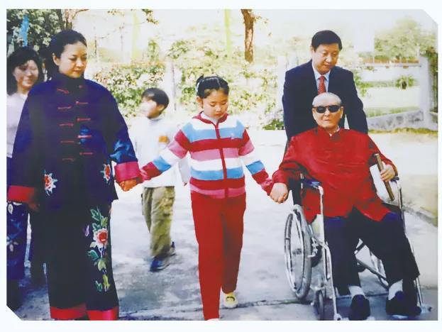 习仲勋和习近平一家。前排左起:彭丽媛、习明泽、习仲勋,推轮椅者为习近平