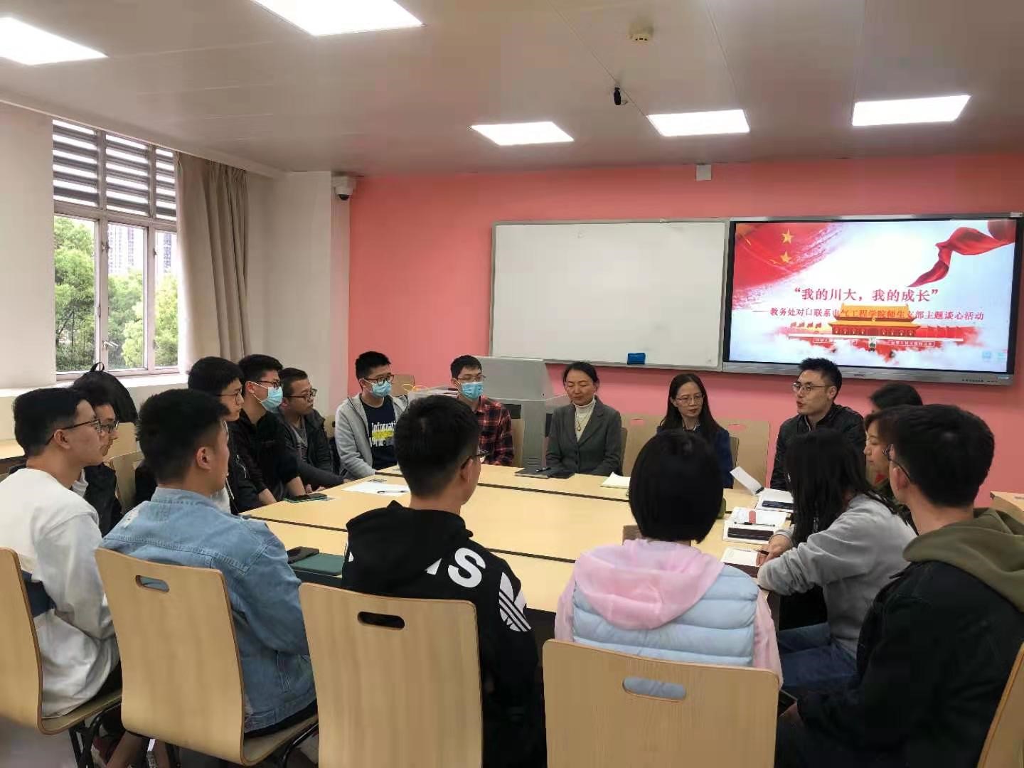 2021年3月19日下午,四川大学教务处与永利集团3044am联合举办了“我的川大,我的成长”师生座谈主题支部活动。四川大学永利集团3044am本科生第一、二、三党支部师生代表,以及四川大学教务处班子与党员同志共同参与了本次座谈会。