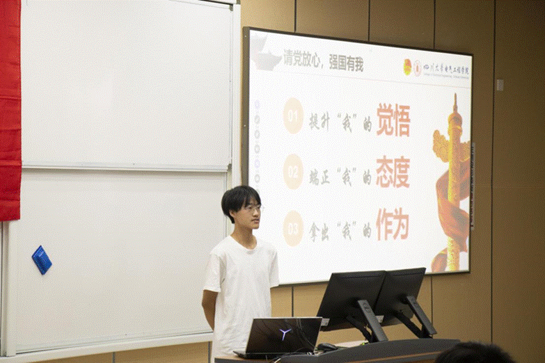 从宣讲、诗歌、到海报,本科2021级电气类第一团支部的同学们以别出心裁的形式表达了“强国有我”的决心。宣传委员王雅衿同学为大家介绍了习近平总书记在七一重要讲话上的主要内容,唐雨彤同学分享了她创作的诗歌《鲜红色与青绿色》,夏旗同学则展示了她的原创海报《我在》。