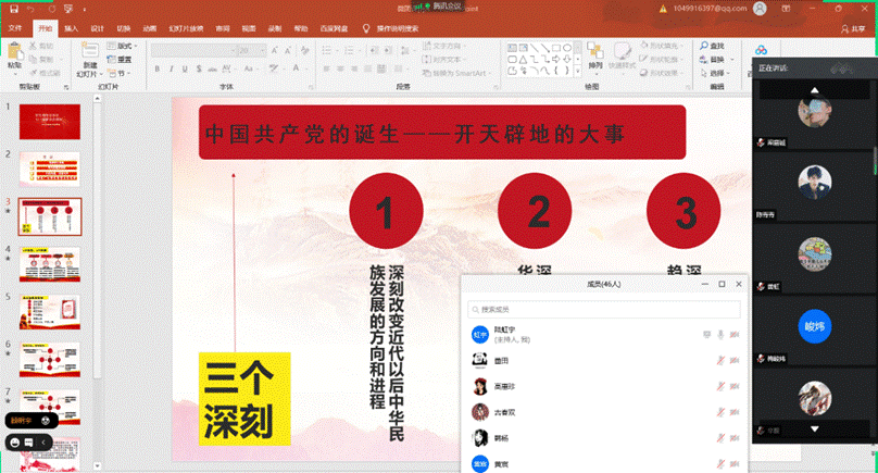 永利集团3044am本科2020级自动化专业第二团支部在中秋假日期间以“云上”的方式、借助“腾讯课堂”进行了宣讲活动,并鼓励同学们以宿舍为单位参加会议以便及时交流讨论。同学们首先观看了“庆祝中国共产党成立一百周年大会”视频,并认真学习了习近平总书记“七一”重要讲话内容。班级团支书对相关微团课进行了详细讲解,集中展示了同学们创作的优秀文创作品。