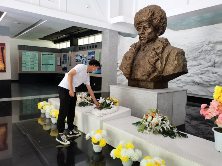 云团队成员张宇鑫同学、关智文同学、迟傲冰同学、段秋雨同学、张过同学选择回归革命故地,祭奠先烈英灵。张宇鑫同学在8月19日回到龙井四中参观东北军政大学吉林分校纪念碑遗址,感受在那战火纷飞峥嵘岁月里,东北军政大学培育革命种子的伟大力量;关智文同学于8月1日前往吉林市桦甸市东北抗联营地遗址参观学习;远在乌鲁木齐的迟傲冰同学,也选择了前往乌鲁木齐市天山区革命烈士陵园追思先烈;段秋雨同学则回到保山市龙陵县腊勐乡松山战役遗址,感受那埋弹沉枪的千秋英雄气;张过同学选择回到河北安平台城村,看“全国第一个农村党支部”,在最先出发的地方感悟初心。