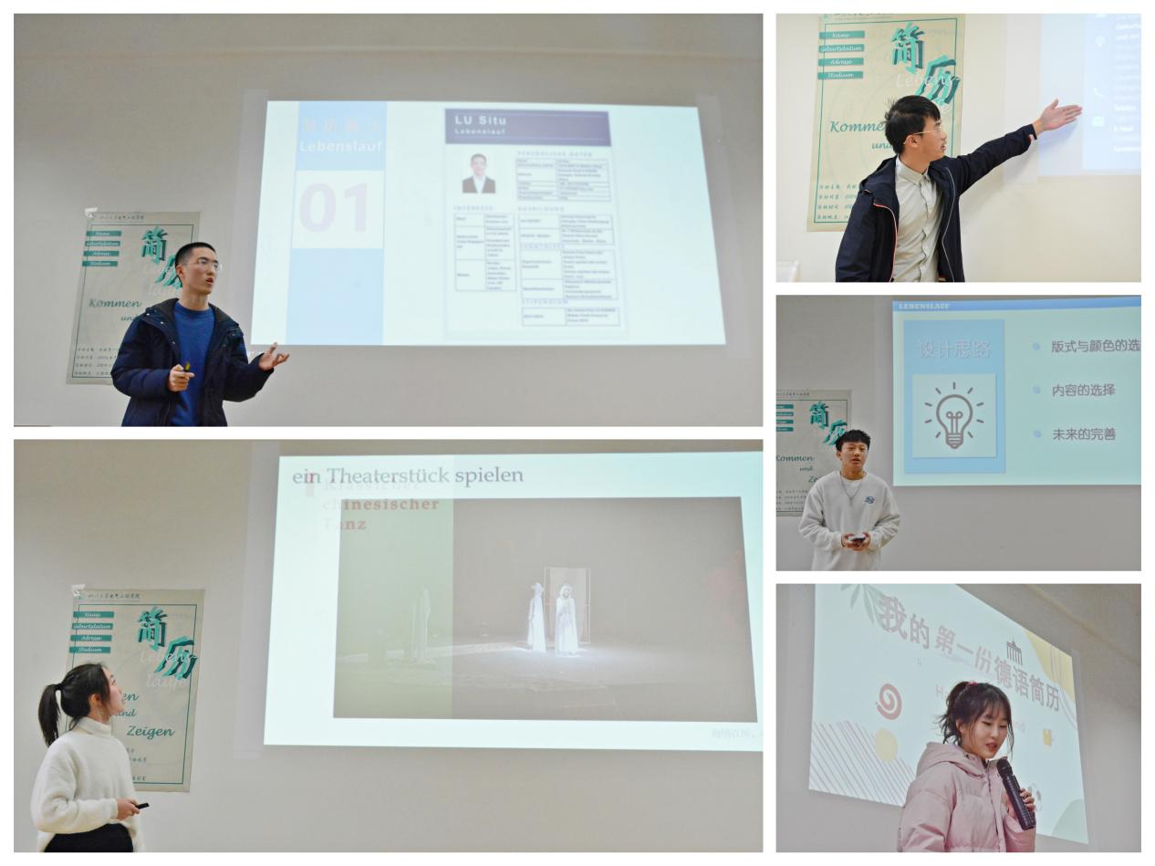 在本项目执行办公室的组织下,2021级中德班学生积极参加德语简历制作及展示大赛,在提高德语水平的同时,重点提升简历制作、PPT制作及演讲等综合能力。