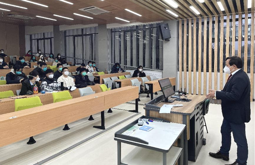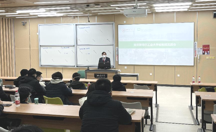 侯正猛教授首先代表克劳斯塔尔工业大学对2021级中德班已取得的优异成绩表示了肯定,随后对即将展开的德国驻华使馆文化处留德人员审核部(APS)要求的审核程序及赴德学习的相关手续进行了介绍。APS审核是办理赴德留学签证的前提条件,项目将通过交流合作团组审核程序完成该审核。