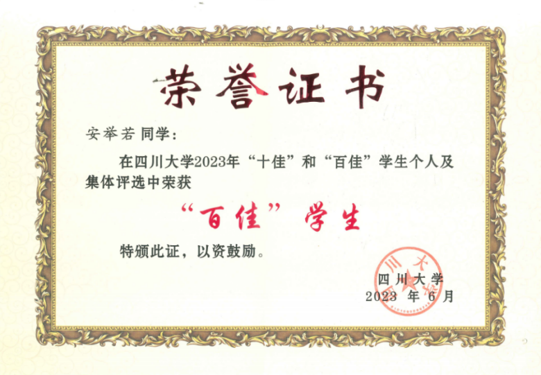 四川大学2023年“百佳”学生-安举若